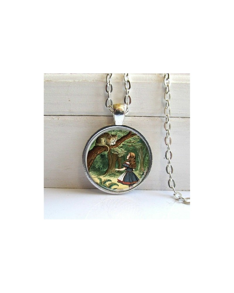 Nincs szín - Vintage új lány és macska Cabochon tibeti ezüst üveglánc medál nyaklánc nők
