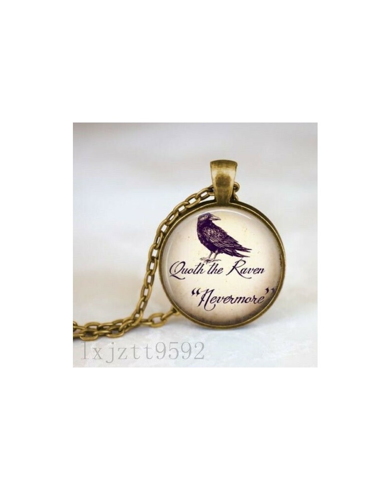 Nincs szín - A Raven Nevermore Quote kép nyaklánc bronz Edgar Allan Poe könyv világnapja