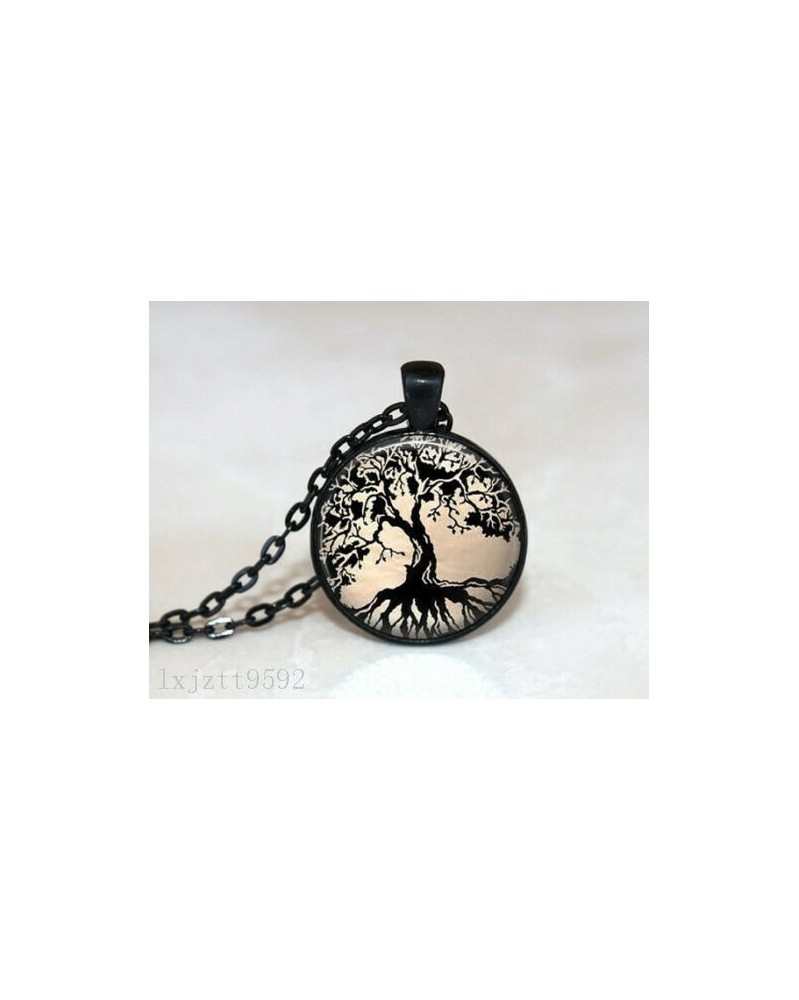 Nincs szín - Fák varázsa üveg kupola Cabochon fekete lánc nyaklánc medál ékszerek (WC140)