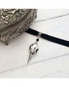 Nincs szín - Nagy ezüst varjú koponya bársony fojtó, fojtó nyaklánc
