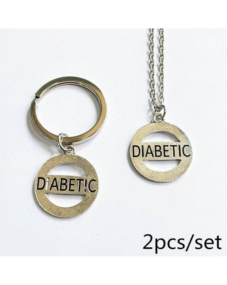 Nincs szín - 2db / készlet DIABETIC kerek szelet nyakláncok lánc nyaklánc kulcstartó