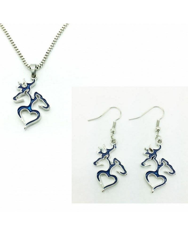 Nincs szín - Új 1 készlet Browning Deer nyaklánc és fülbevaló divatékszer ajándék nők kék