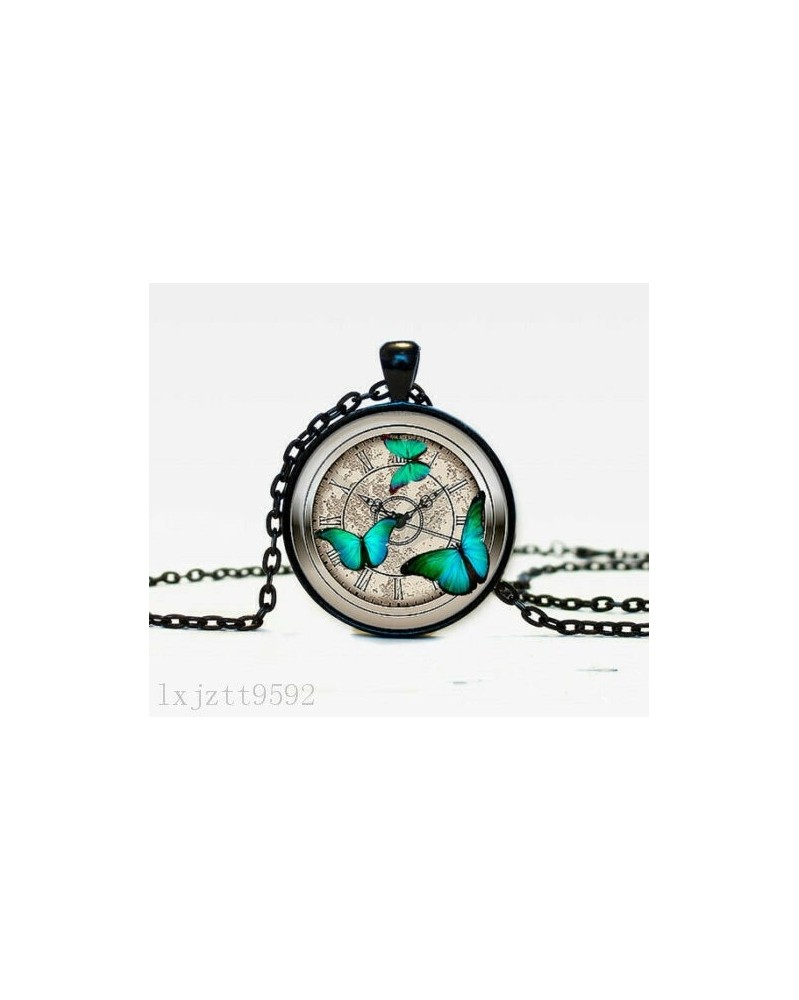 Nincs szín - Butterfly Charm Glass Dome Cabochon fekete lánc nyaklánc medál ékszerek (WC118)