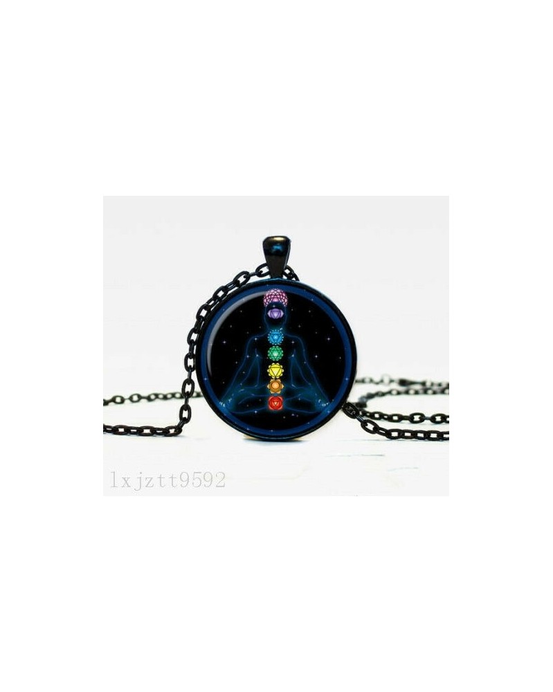 Nincs szín - Yoga Charm Glass Dome Cabochon fekete lánc nyaklánc medál ékszerek (WC119)