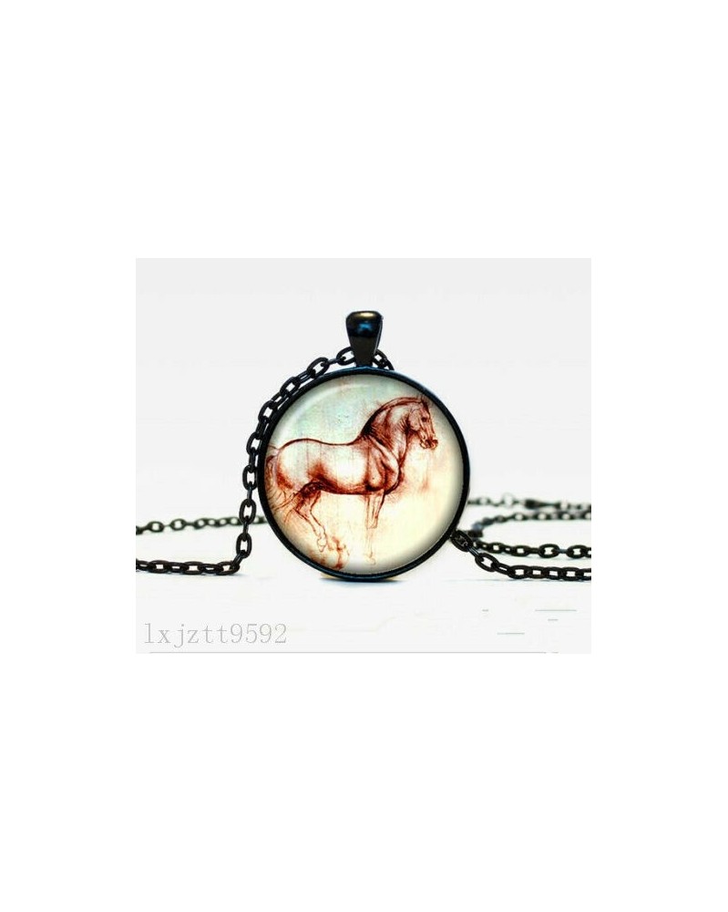Nincs szín - Lovak elbűvölő üveg kupola Cabochon fekete lánc nyaklánc medál ékszerek (WC121)