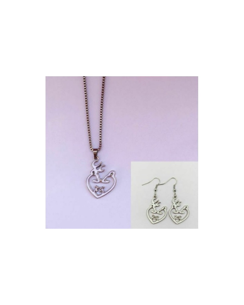 Nincs szín - 1 készlet Szív romantikus Browning Deer nyaklánc és fülbevaló ékszer ajándék nők fehér