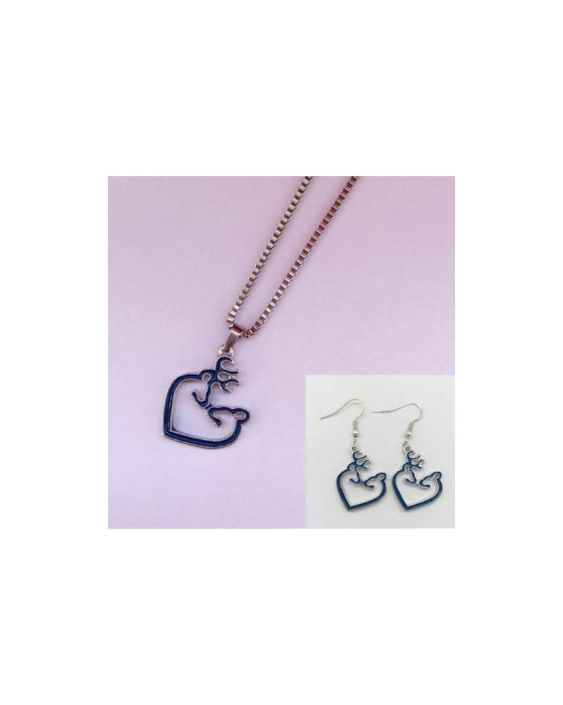 Nincs szín - 1 készlet szívbarnító szarvas nyaklánc és fülbevaló divatékszer ajándék nők kék