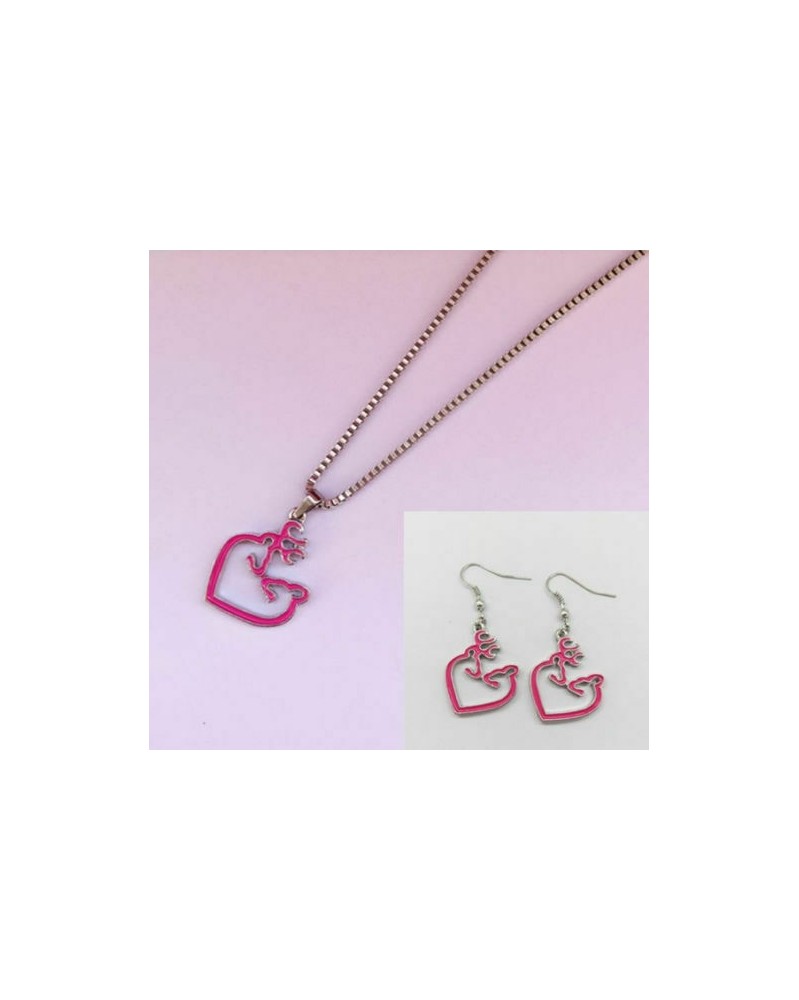 Nincs szín - 1 készlet szívbarnító szarvas nyaklánc és fülbevaló divatékszer ajándék nők rózsaszín