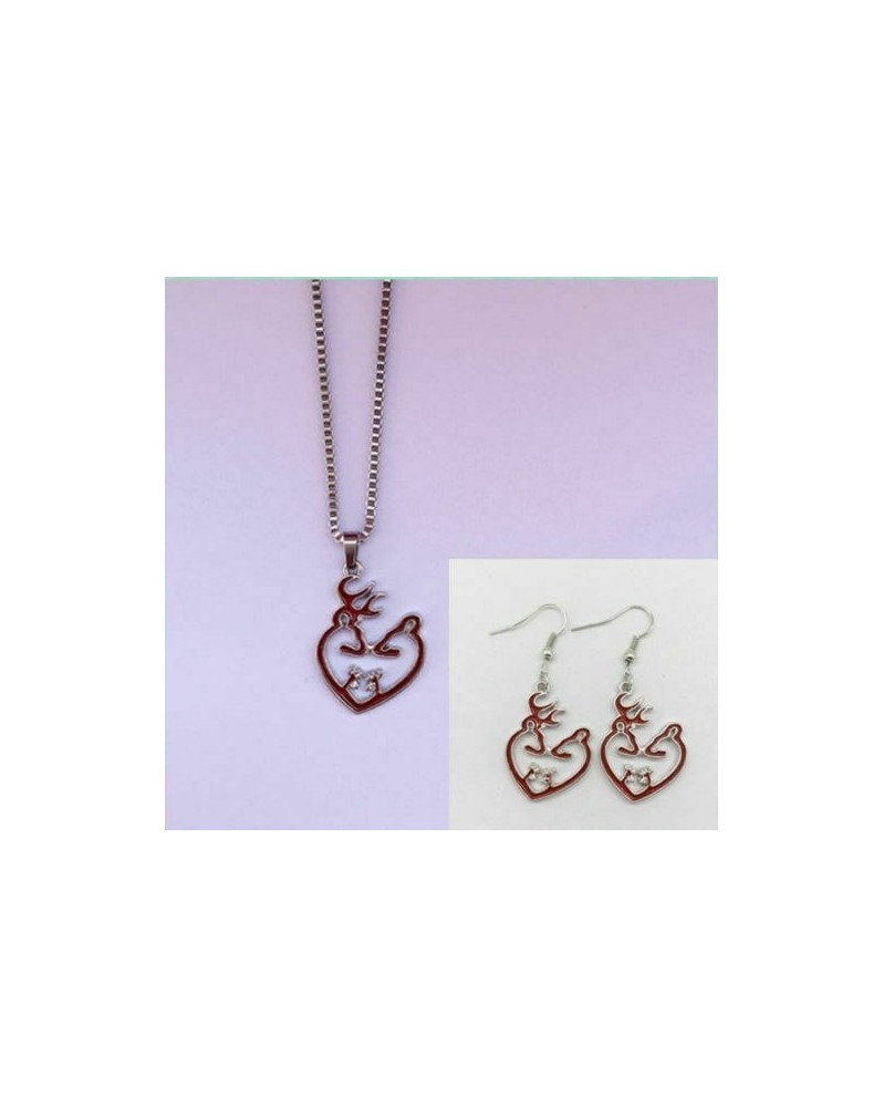 Nincs szín - 1 készlet Szív romantikus Browning Deer nyaklánc és fülbevaló ékszer ajándék nők piros