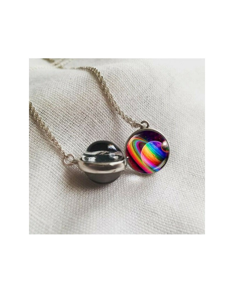 Nincs szín - Stars Nebula üveggömb Cabochon nyaklánc dupla oldalú üvegmedál női ajándékok