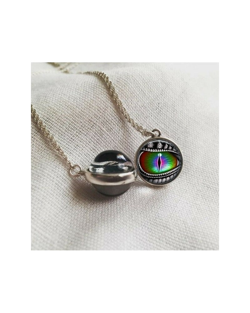 Nincs szín - Sárkány szem kétoldalas medál nyaklánc ékszer üveg művészet kép kézzel készített