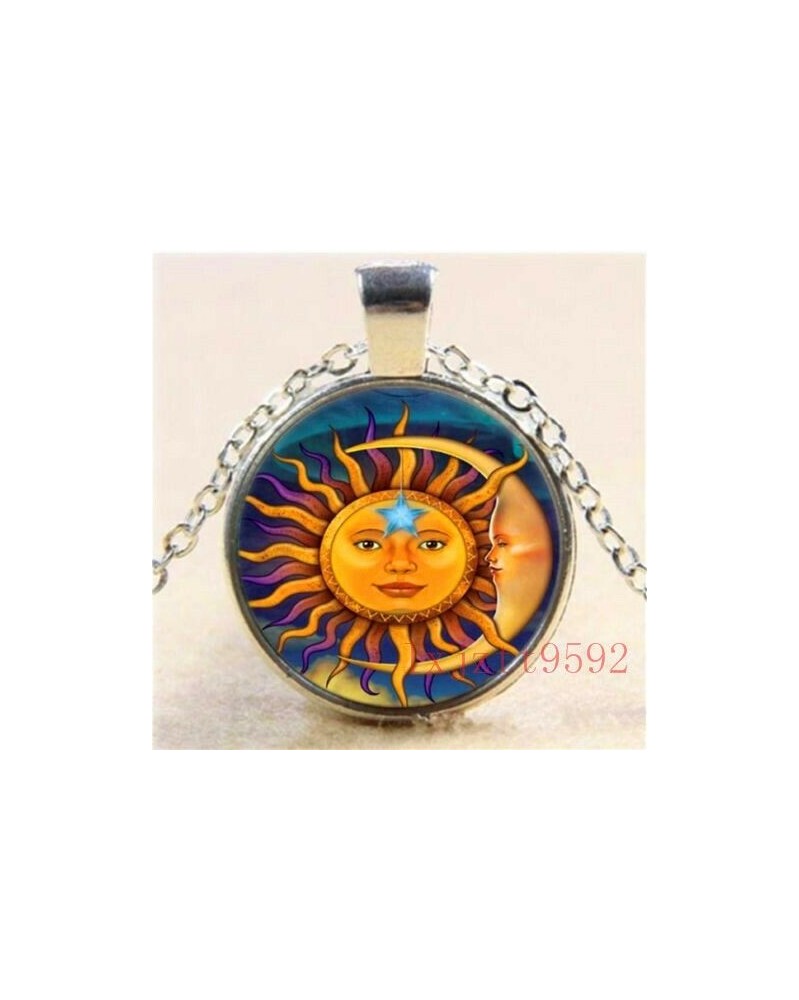 Nincs szín - Hold és a nap fotó Cabochon üveg Tibet ezüst lánc medál nyaklánc