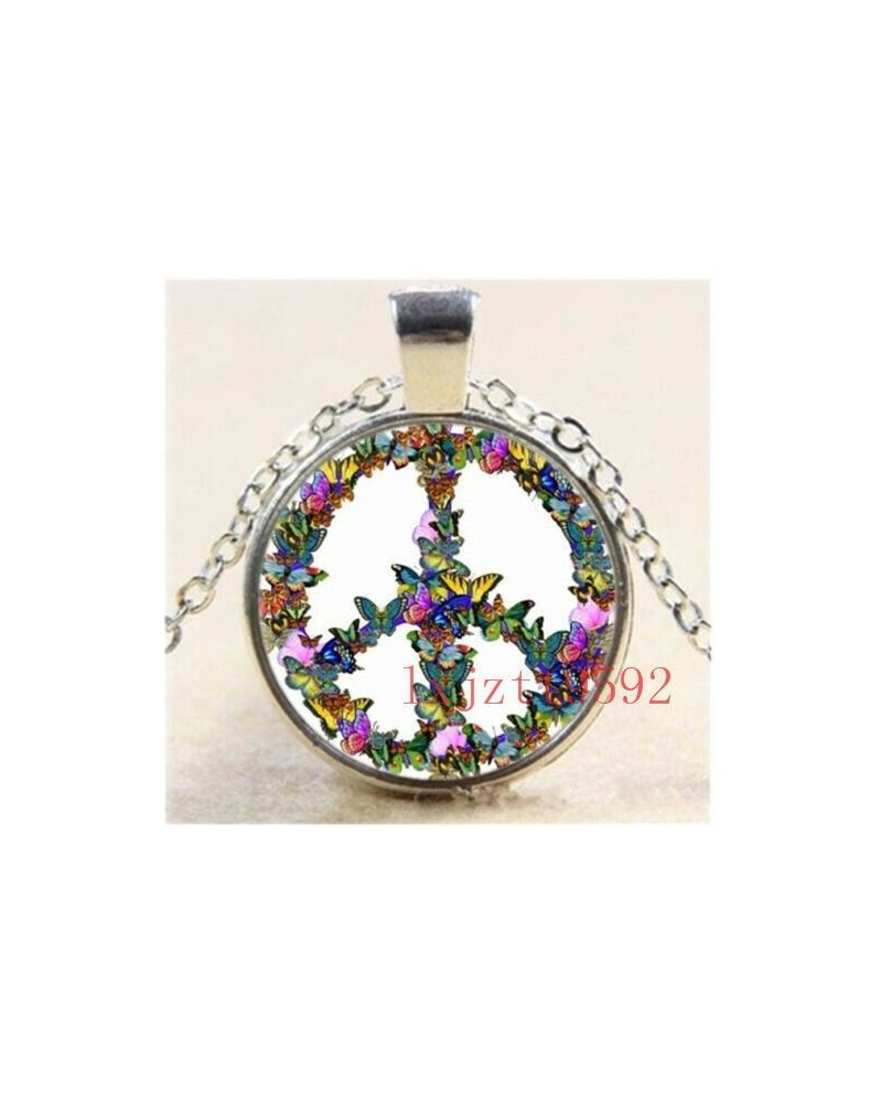 Nincs szín - Pillangó béke fotó Cabochon üveg Tibet ezüst lánc medál nyaklánc