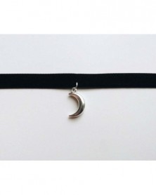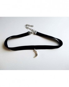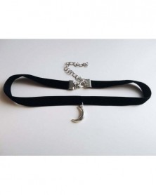 Nincs szín - Félhold holdfojtó, fekete bársony choker ezüst hold bájjal, gótikus choker