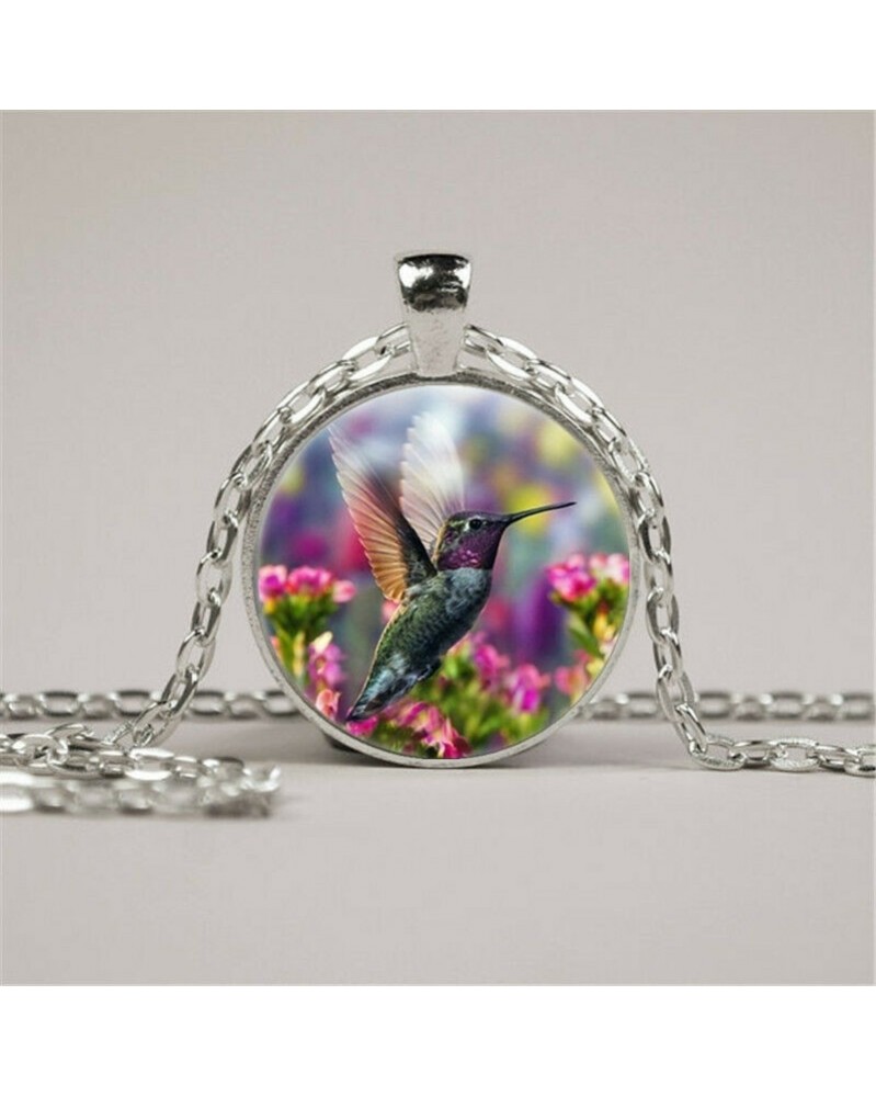Nincs szín - Kolibri és virág fotó Tibet ezüst Cabochon üveg medál lánc nyaklánc