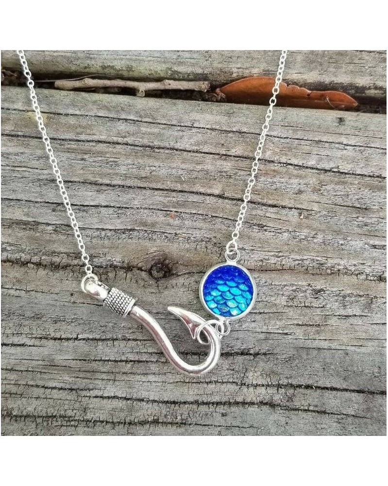 Nincs szín - kék AB Halmérleg ékszerek Halhorgos halhorgos nyaklánc Horgász ékszer nyaklánc