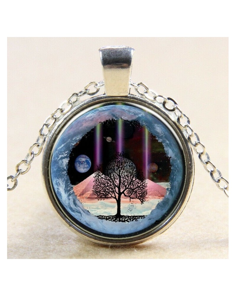 Nincs szín - Vintage csillagos égbolt fa Cabochon tibeti ezüst üveglánc medál nyaklánc F72