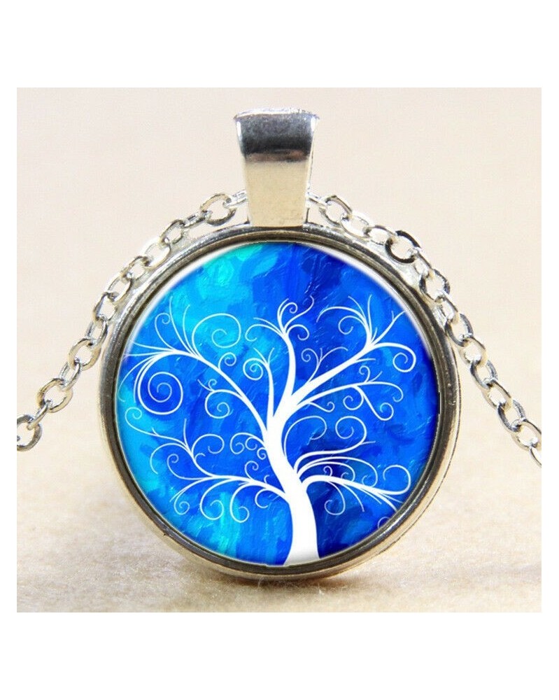 Nincs szín - Kék életfa Cabochon tibeti ezüst üveglánc medál nyaklánc F42