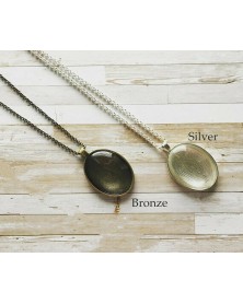 Image is set on 30x40mm large oval metal tray and sealed with a glass dome. silver