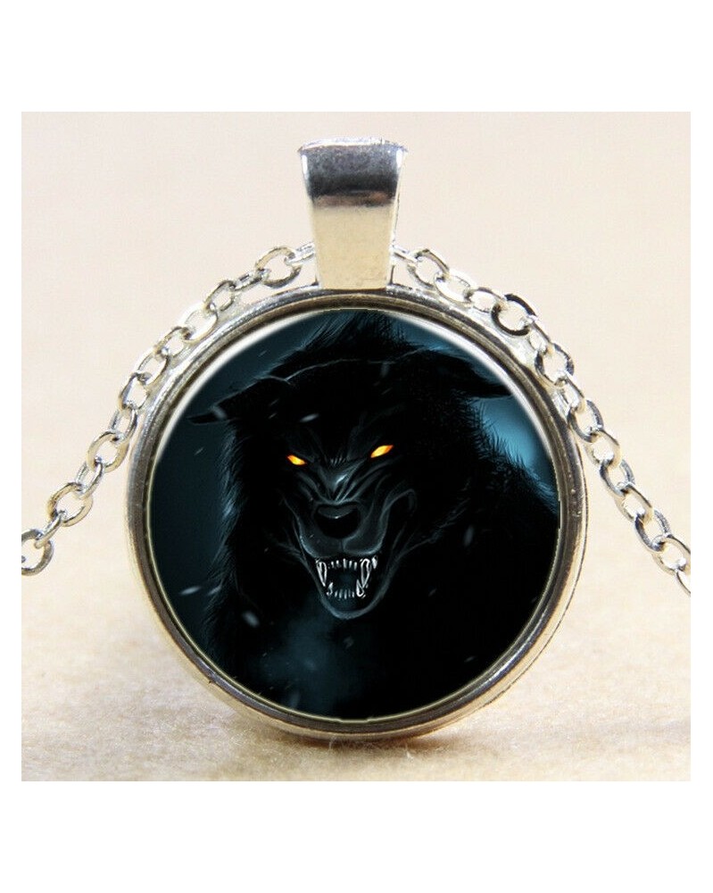 Nincs szín - Vintage farkas Cabochon tibeti ezüst üveglánc medál nyaklánc ékszer F33