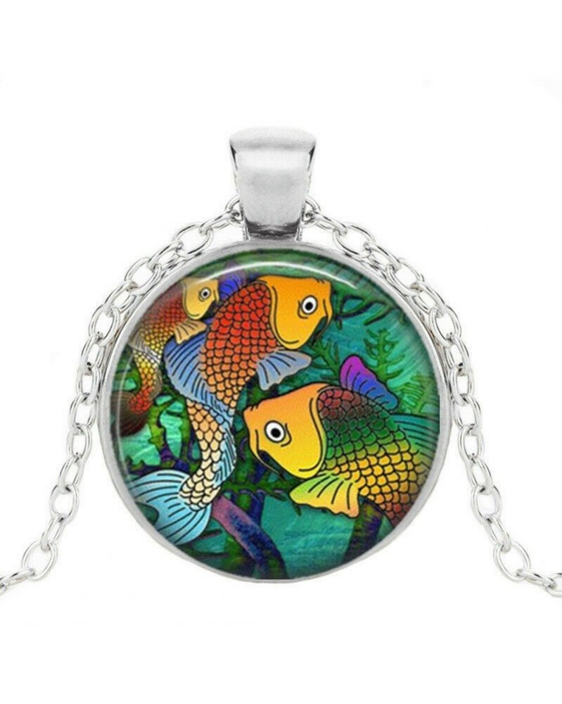 Nincs szín - Ezüst hal nyaklánc üvegcserép ékszer hal ékszer tengeri élet nyaklánc