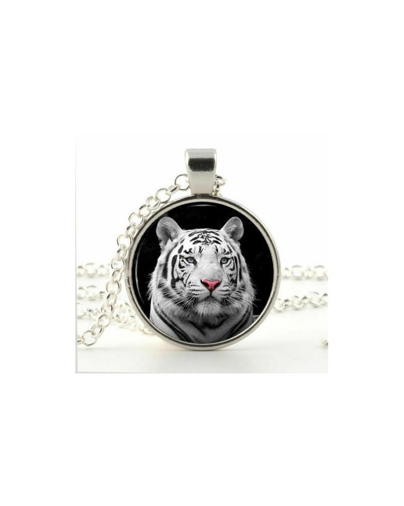 Nincs szín - 2017-es Vintage White Tiger Cabochon tibeti ezüst üveglánc medál nyaklánc
