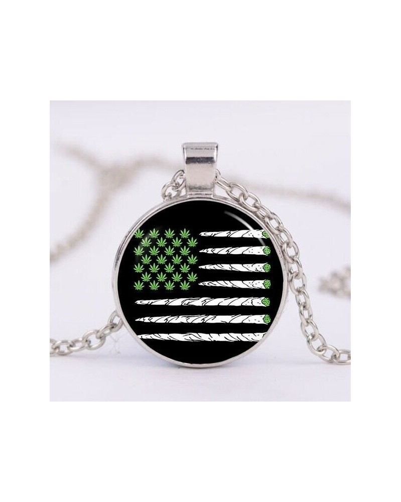 Nincs szín - Marihuána zászló Cabochon üveg medál lánc nyaklánc Színe Tibet ezüst