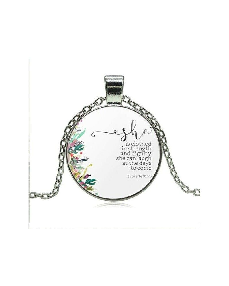 Nincs szín - Erőbe és méltóságba öltözött. Példabeszédek 31:25 Nyaklánc Biblia ékszerek