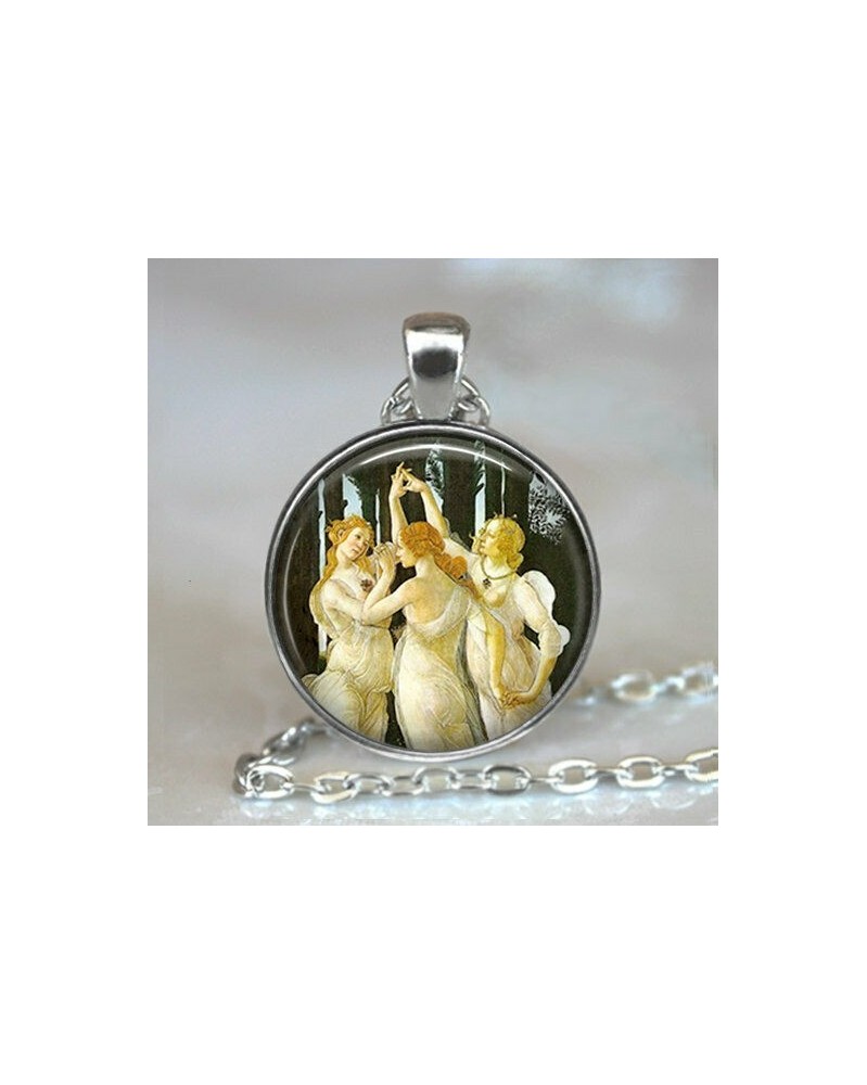 Nincs szín - Botticelli Három grácia művészi medál, Ezüst nyaklánc, Botticelli art medál