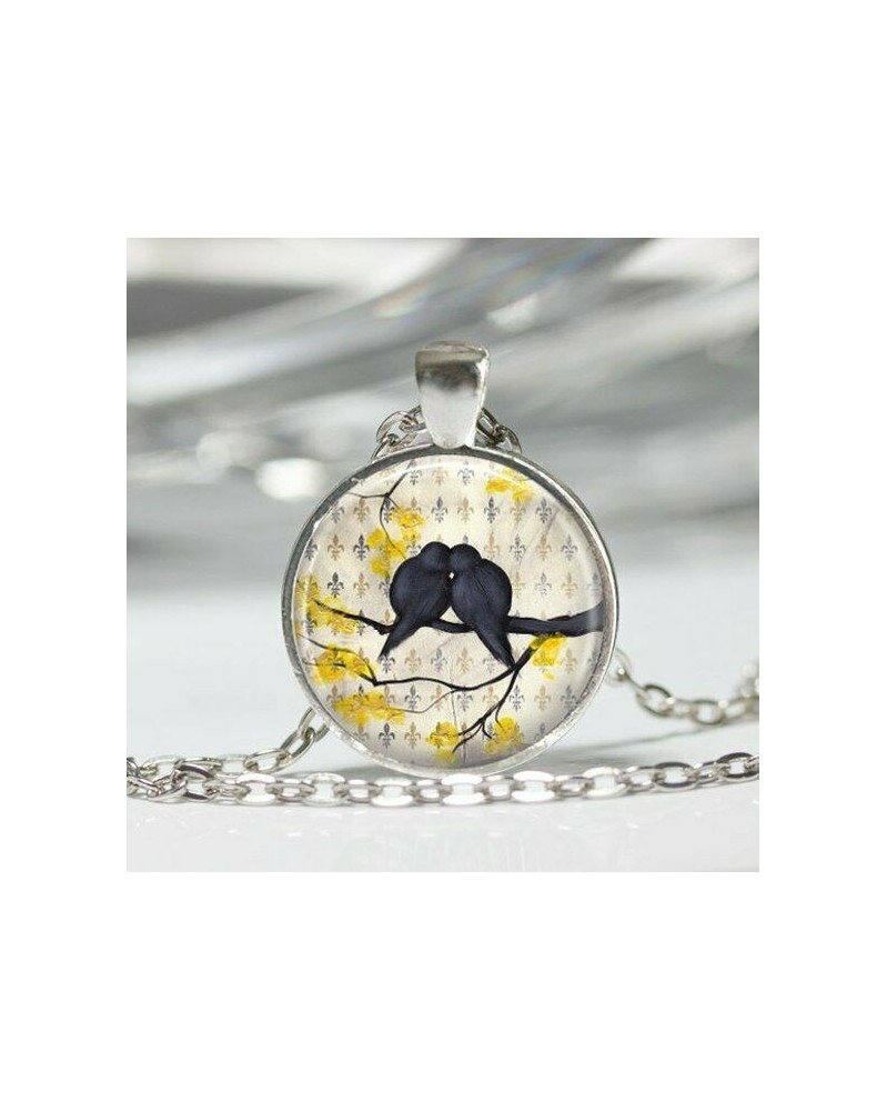 Nincs szín - Madár nyaklánc Love Birds Lovebird ékszerek De Lis Nature Art medál ezüst
