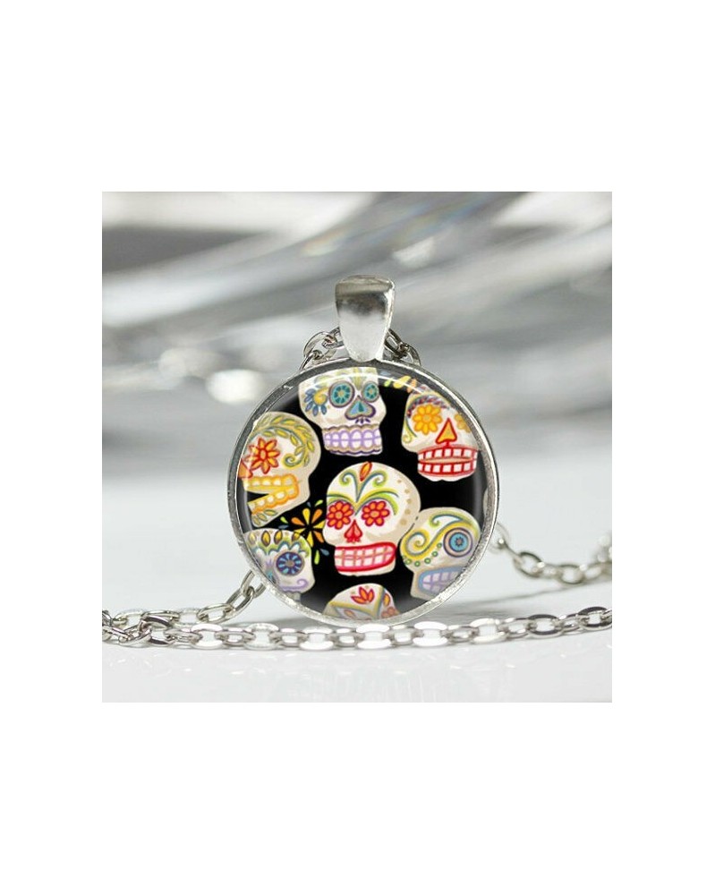 Nincs szín - Cukor koponyák nyaklánc Halottak ékszerei Dia De Los Muertos Art Silver