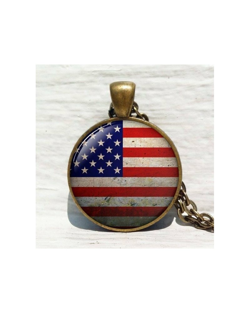 Nincs szín - Amerikai zászló medál nyaklánc - bronz medál - hazafias ékszer - amerikai
