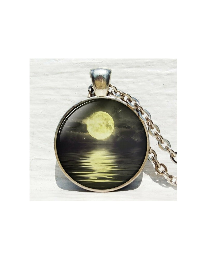 Nincs szín - Telihold nyaklánc Hold medál Space Galaxy szürke hold ékszer nyaklánc művészeti ajándék