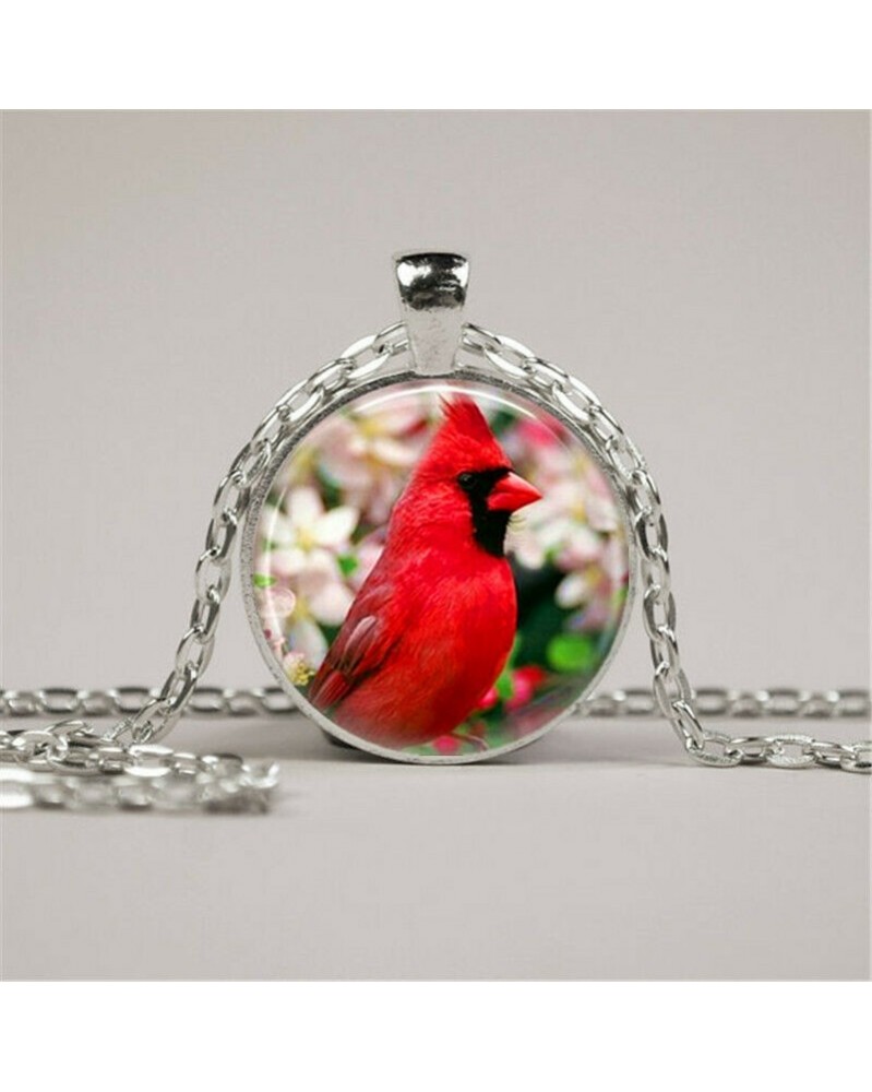 Nincs szín - Bíboros madár virág medál üveg medál nyaklánc bíboros ékszerek
