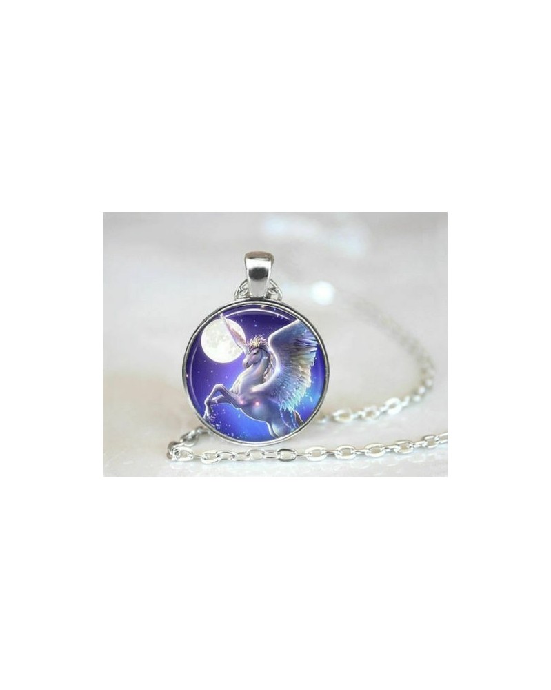 Nincs szín - 2017 Vintage egyszarvú Cabochon tibeti ezüst üveglánc medál nyaklánc