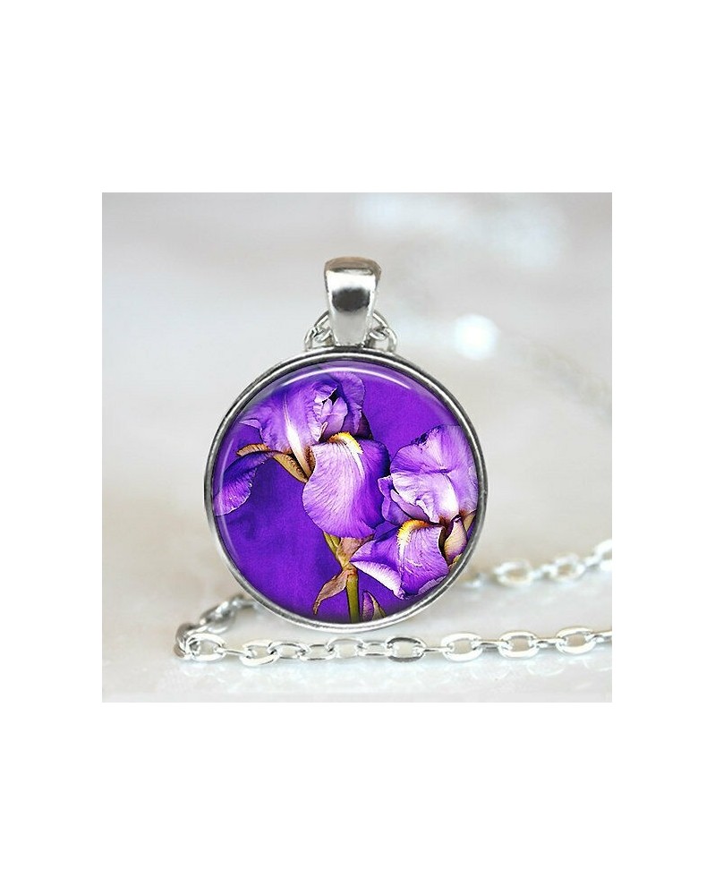 Nincs szín - Iris Art Medál, Iris Botanical Medál, Virág Nyaklánc, Iris Ékszer, (Ezüst
