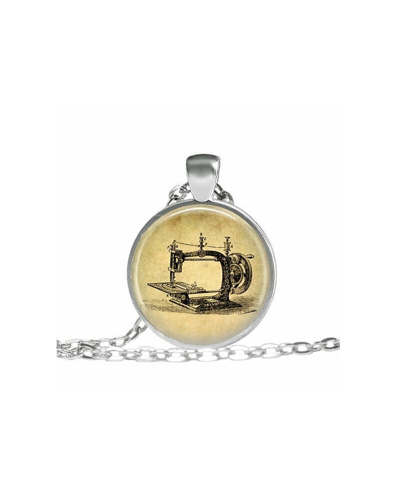 Nincs szín - Antik varrógép kép nyaklánc, varrónő nyaklánc, divat, ezüst