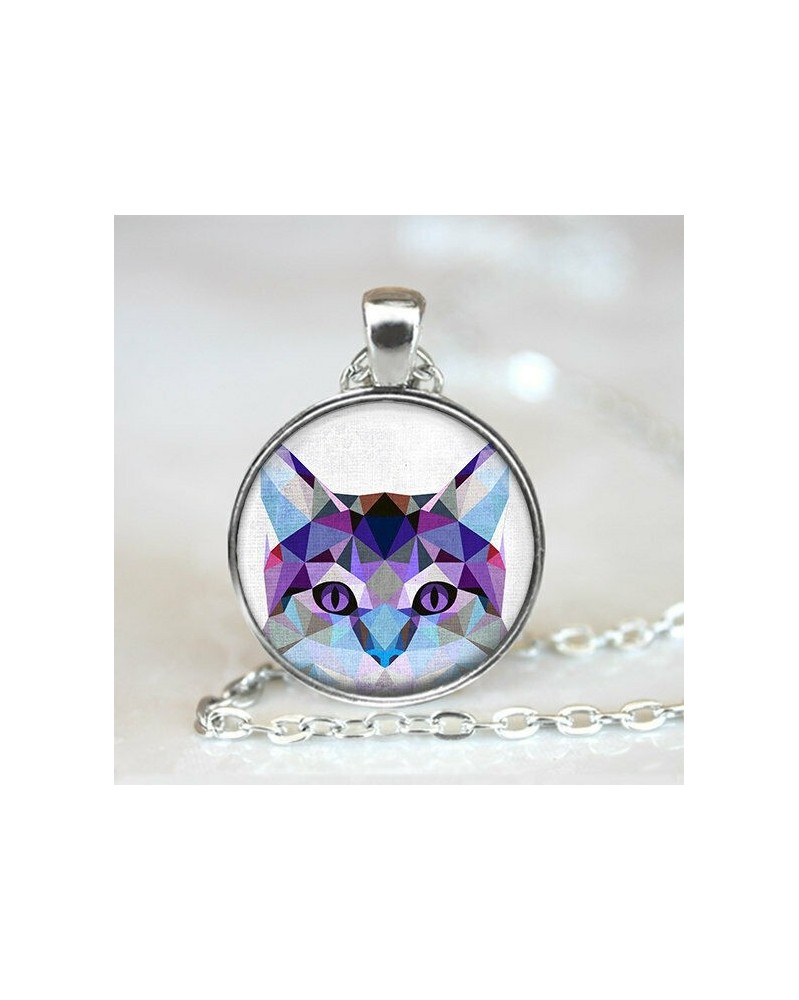 Nincs szín - Geometrikus macska medál, Cat Art nyaklánc, Macska ékszerek, Polygon Cat Art, Ezüst