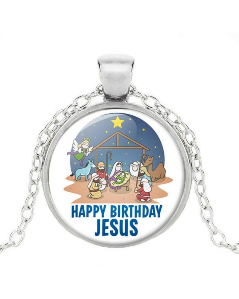 Nincs szín - Boldog születésnapot Jézus karácsony karácsonyi keresztény biblia medál nyaklánc ezüst Új
