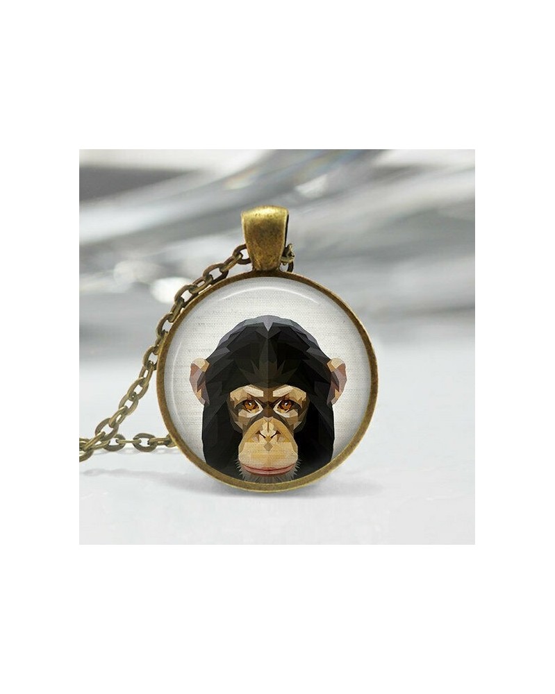 Nincs szín - Majommedál, geometriai csimpánz nyaklánc, majomművészeti ékszerek, sokszög, ezüst