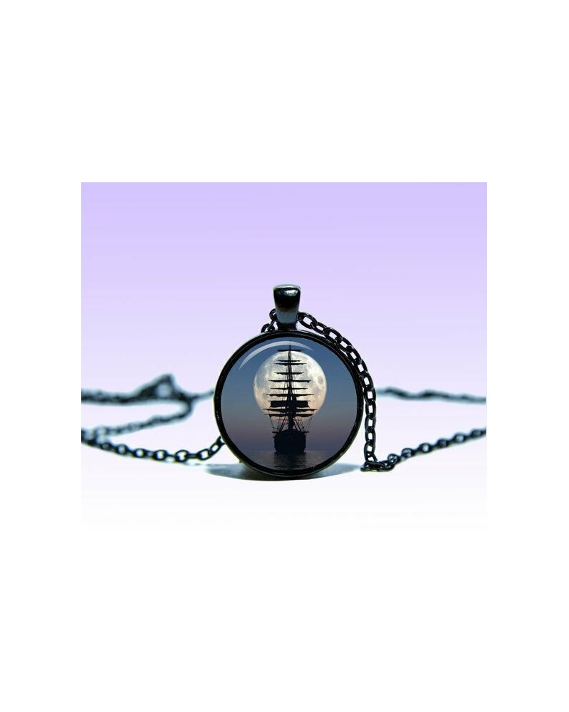 Nincs szín - Telihold és vitorlás medál Planet NECKLACE fekete ékszer varázsa