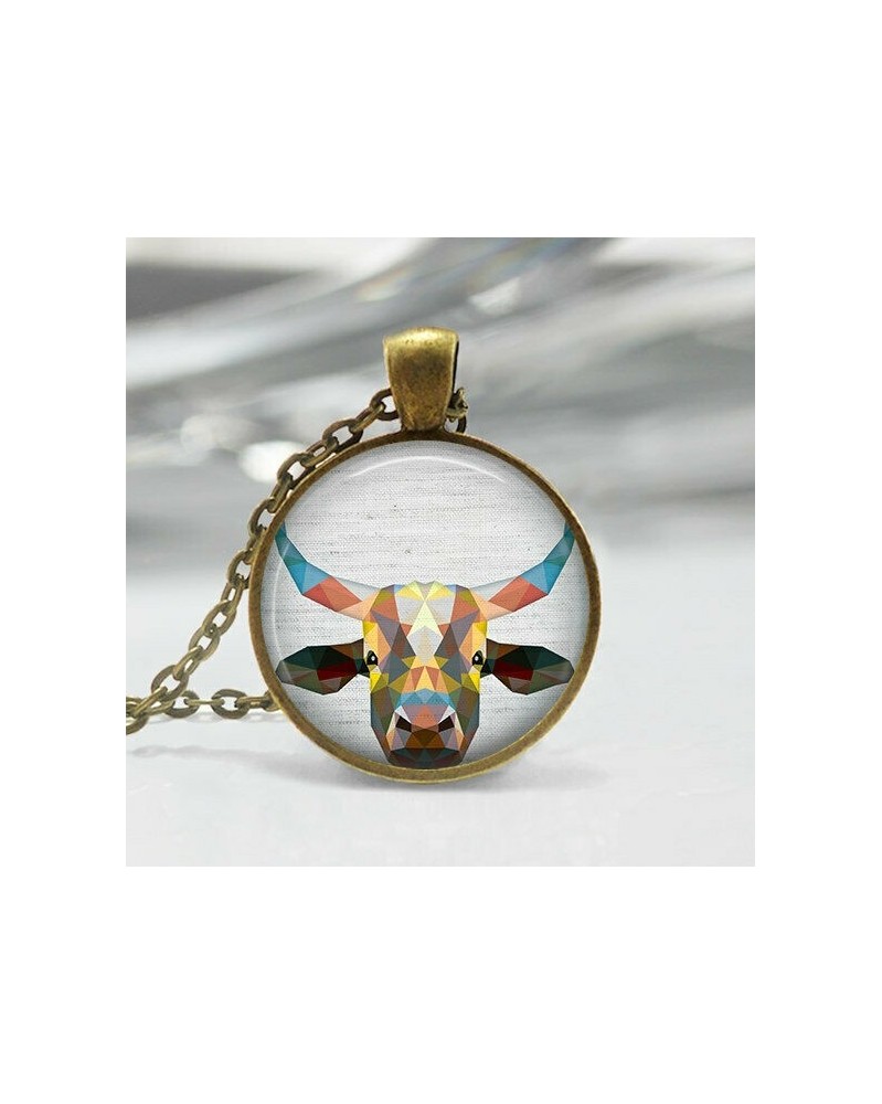 Nincs szín - Steer Medál, Geometrikus szarvasmarha nyaklánc, Steer Art ékszerek, Polygon Steer, Bronz