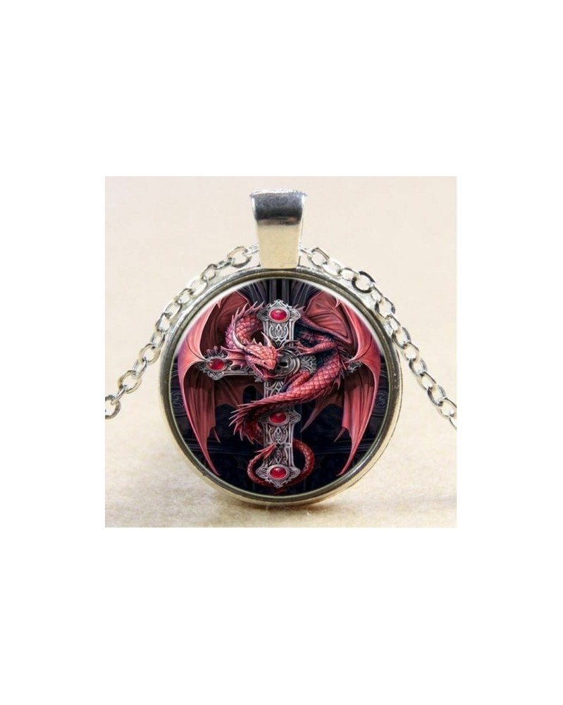 Nincs szín - Vintage sárkány Cabochon tibeti ezüst üveglánc medál nyaklánc ékszer * 49