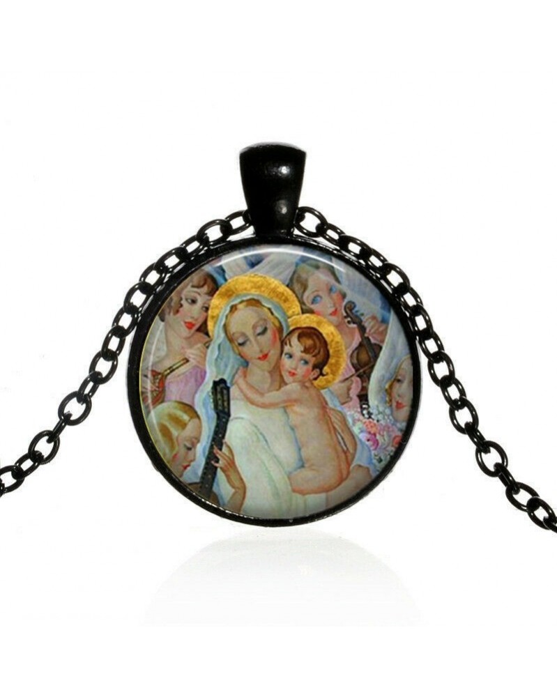 Nincs szín - Mária Anya, Jézus baba, Üvegkupolájú nyaklánc lánc Medál Nagykereskedelmi ékszer fekete