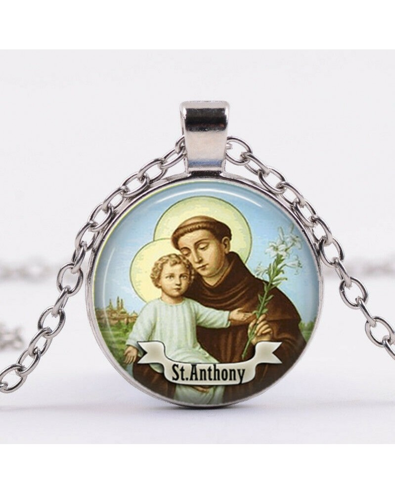 Nincs szín - Szent Antal vallási üvegkupola nyaklánc lánc medál nagykereskedelmi ezüst ékszerek