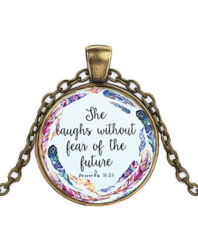 Nincs szín - Nevet a jövőtől való félelem nélkül, nő, bibliai vers nyaklánc, bronz