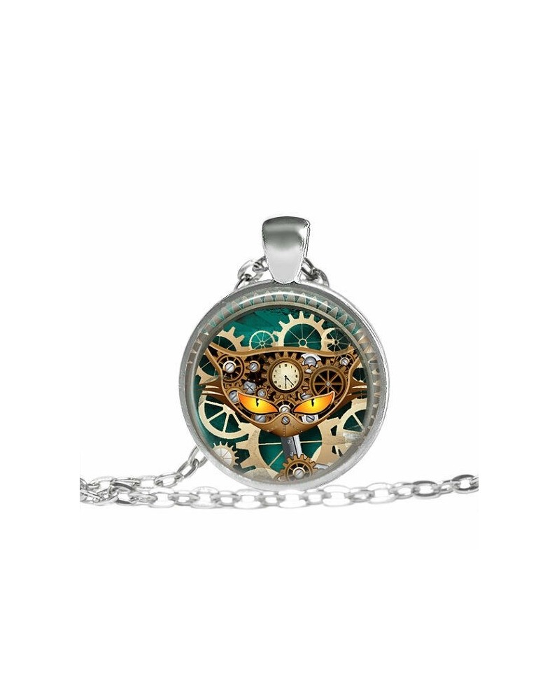 Nincs szín - Steampunk macska nyaklánc, Gear Cat ékszerek, Gear nyaklánc macska szerető, ezüst