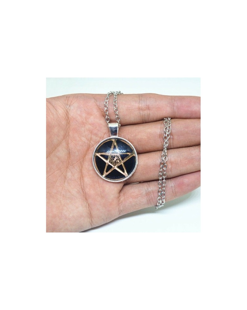 Nincs szín - Pentagram Cabochon tibeti ezüst üveglánc medál nyaklánc ékszer