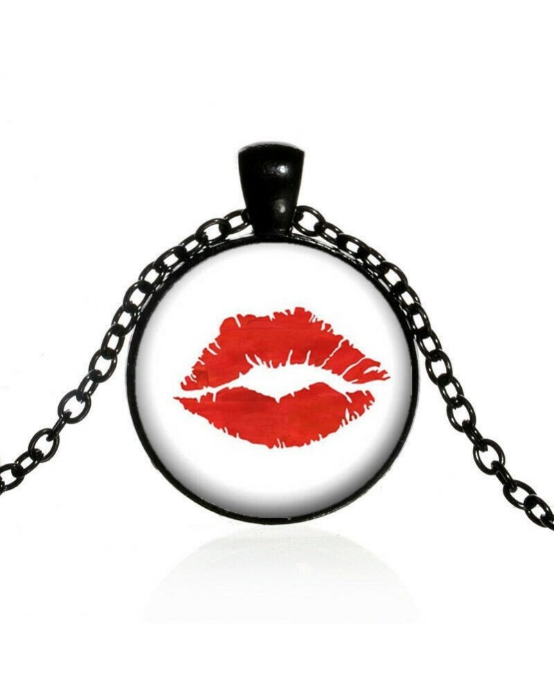 Nincs szín - Női vörös ajkú nyaklánc medál üvegláncok fojtó ékszer ajándék fekete