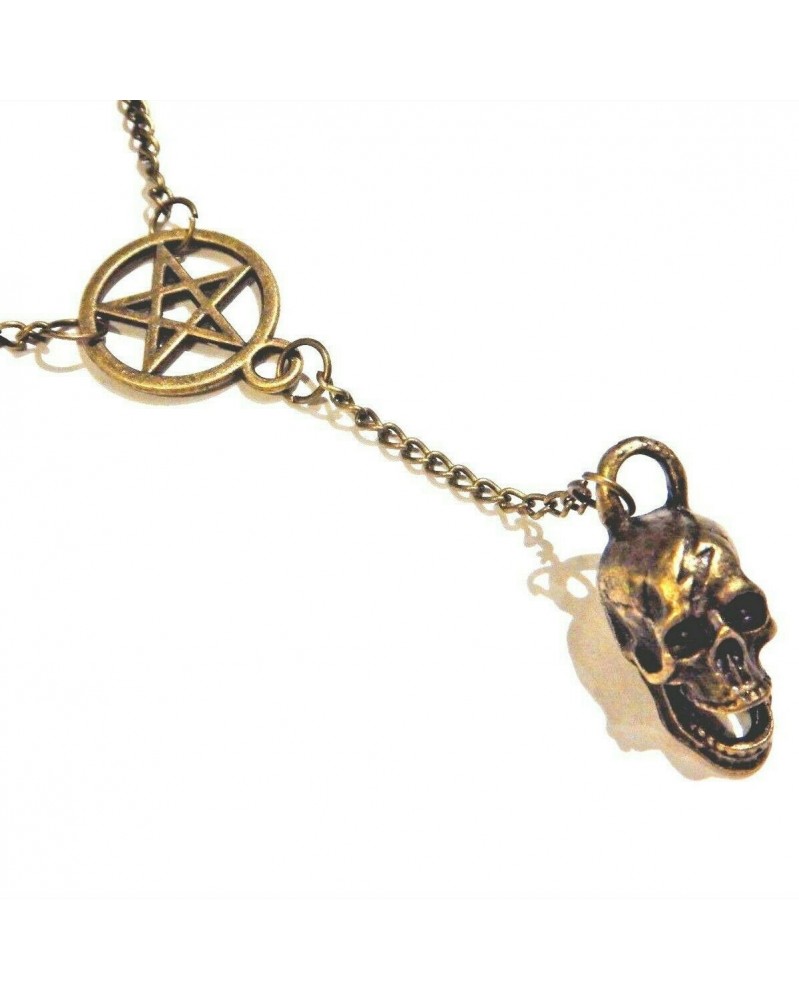 Nincs szín - BRONZ SKULL & inverted PENTAGRAM nyaklánc Pentacle sátáni ördög medál